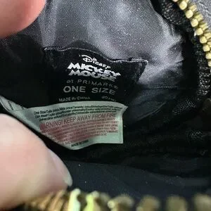 Charming Disney pouch featuring Mickey Mouse. Black fabric with gold zipper detail.