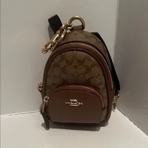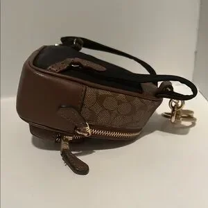 These Coach mini bags showcase the iconic brown monogram pattern, offering a blend of style and functionality. Crafted from durable coated canvas, they feature elegant gold-tone hardware and leather trim details. Perfect for carrying essentials, these mini bags add a touch of sophistication to any ensemble.