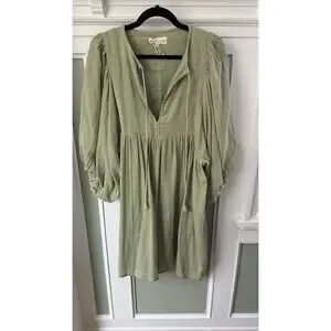 Daughters of India Women's Kyra Mini Dress Jade Size Medium Solid Gauze