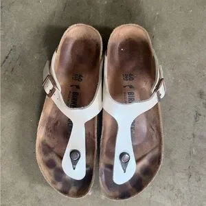 Birkenstock Gizeh Birko-Flor “Pearl White” Leather Sandals - Sz 40