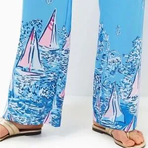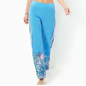 NWOT Lilly Pulitzer Bal Harbour Palazzo pant. “Lil Nauti” print. These are so beautiful …Vibrant blue wide leg pants. Nautical anchor and sailboat design. Comfortable and stylish. Perfect for vacation, resort & travel. They have not been worn, but the tag was removed. Literally in perfect condition! Hate to sell them but I’ve lost 40lbs & have never been able to wear them.