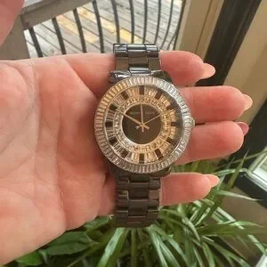 Swarovski crystal paved dial with silver-tone hands and crystal hour markers.
