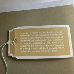 The watch has a black ceramic case and bracelet.