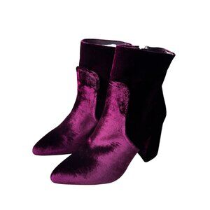 Steve Madden boots, ankle boots, block heel boots, pointed toe boots, women's size 7, stylish boots, chic footwear, textured boots, fall boots, velvet ankle boots, zip-up boots, designer boots, burgundy velvet boots