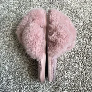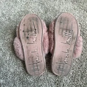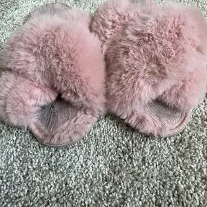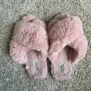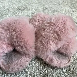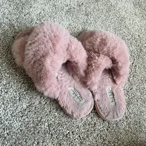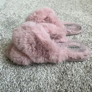 Pink fuzzy slippers