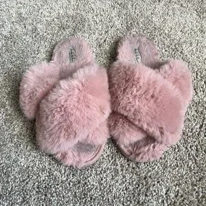 Small 5-6 fur fuzzy slip on slippers open toe