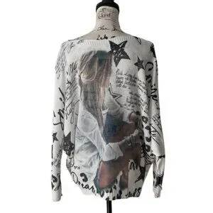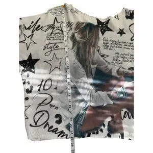 Made in Italy Womens Graphic Open Knit Sweater Long Sleeve Cowgirl Star Beach