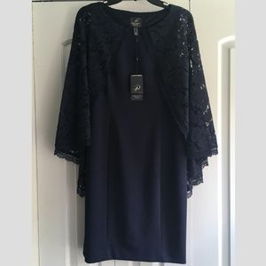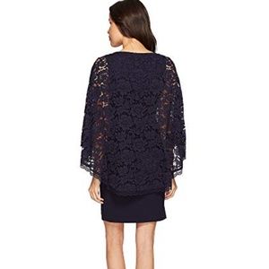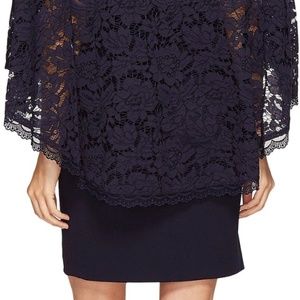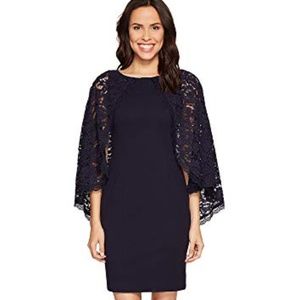 NEW! Adrianna Papell Navy Cynthia Lace Cape Sheath Dress