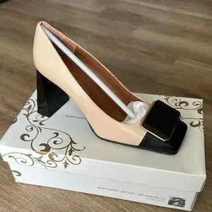 Step out in style with these elegant cream and black heels from Brenda Zaro, pure leather and made in Spain. Perfect for any occasion, these shoes offer both comfort and sophistication. European size 39, US 8.5