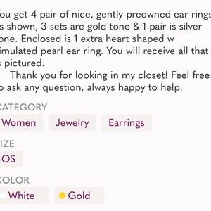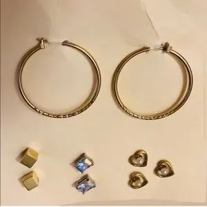 You get four complete pair. The little heart set has one extra earring with it. All of them are in very good condition and gently pre-loved.