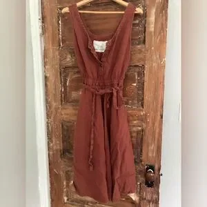 A retired style in beautiful redwood color- snaps on the top and a breezy wonderful skirt- modified to be sleeveless instead of the cap sleeves- size S/M