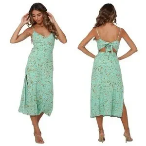 Hello Molly California Dreaming Midi Dress Green Dainty Ditzy Floral Sli…
