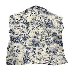 NWT Joie Blue & White Floral Sleeveless Hawaiian tropical print linen top Large