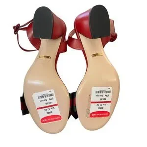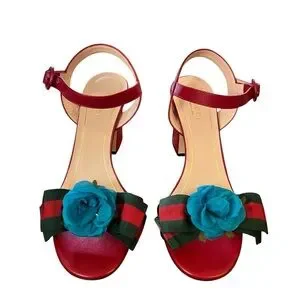 Authentic Red Gucci Web Silk Flower Bow Mid Sandals Size 37;new with tags