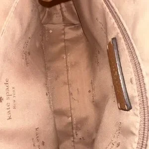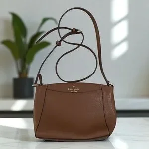 Kate Spade New York pebbled leather crossbody bag in a rich brown color. Features gold-tone hardware, an exterior slip pocket, top zip closure, and a fully lined interior with slip and zip pockets for easy organization. Adjustable crossbody strap for versatile wear. Clean and classic design perfect for everyday use or travel.