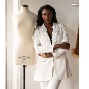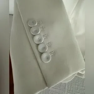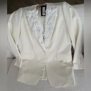 This elegant white blazer is perfect for any occasion. Its sleek design and refined details make it a must-have in your wardrobe.20” ptp
