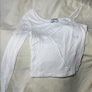 LNA Cream Asymmetrical Fitted Long Sleeve Blouse