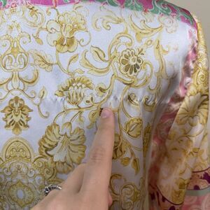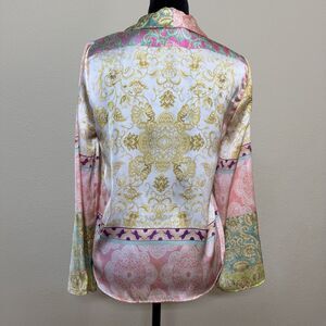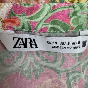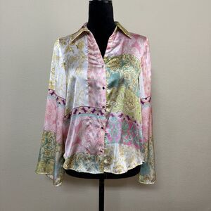 Zara blouse women small multicolor pastel satin feel trumpet long sleeve pink