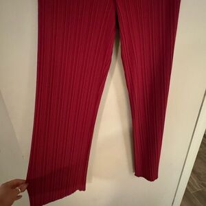 This MaxMara outfit showcases a sleeveless tunic paired with wide-legged pants in a vibrant red and pink hue. The tunic's minimalist design and high neckline exude sophistication, while the relaxed pants offer a comfortable yet stylish fit. Ideal for making a bold fashion statement, this set combines elegance with modern flair.