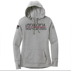 GRUNT STYLE BEAUTIFUL BADASS Gray Hoodie with Graphic Print