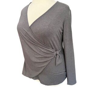 Betabrand Size XXL Charcoal Gray Karen Stretch Side Tie Long Sleeve Wrap Top