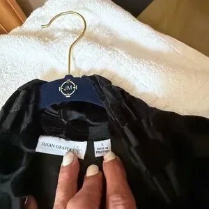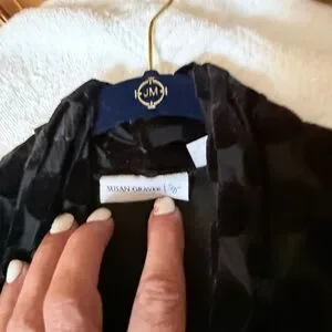 Elegant black vest with textured polka dots. Sleeveless design by Susan Graver. Preloved. Very good condition. No marks or tears.