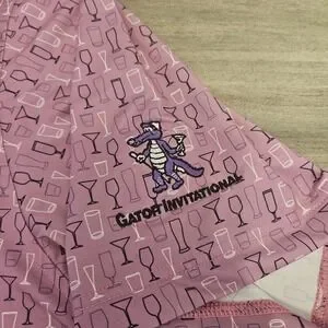 The FootJoy Golf Polo Shirt in size XL features an eye-catching geometric print with a purple wine and cocktails theme, making it perfect for any golf enthusiast looking to add a touch of fun to their wardrobe. Made from a blend of polyester and spandex, this shirt offers comfort and stretch for ease of movement on the golf course. With a collared neckline, short sleeves, and button closure, this polo is both stylish and practical for any casual or activewear occasion. Easy to care for with machine washable fabric, this FootJoy polo is designed for the modern man who enjoys both fashion and function.