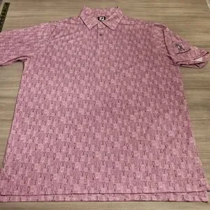 FootJoy Golf Polo Shirt Mens XL Purple Wine and Cocktails Allover Print Stretch