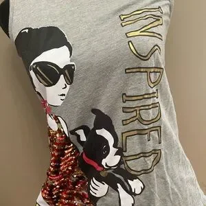 Stylish gray tee featuring a graphic design with sequins. Perfect for casual wear.