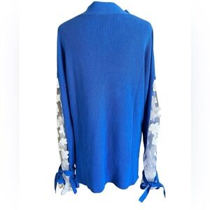 Brand new tags! MSRP $118. Please see photos for measurements and let me know if you have any questions. Contrast white sheer sleeves with flowers embroidered throughout the lace. Ties at both wrists. V-neck and oversized. A perfect go to sweater!