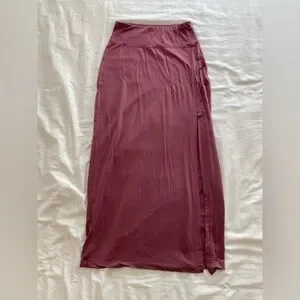 Mauve maxi skirt by Athleta. Very soft fabric with a sleek design. Thick waistband and medium high leg slit. Perfect for casual wear.