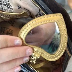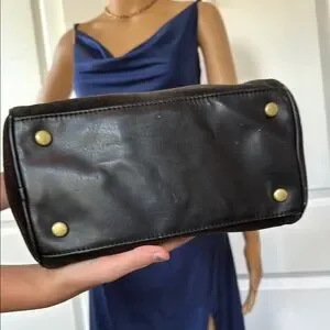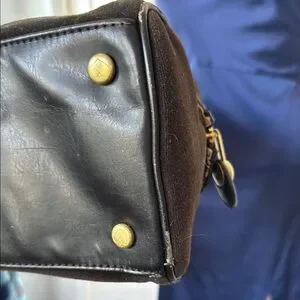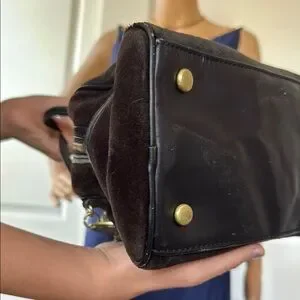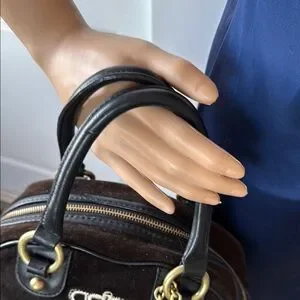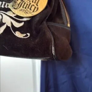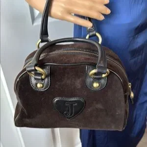 This Juicy Couture satchel combines a rich brown and black color palette with elegant gold-tone hardware, creating a sophisticated and timeless look. The structured design and double handles offer both style and functionality, making it a versatile accessory for any occasion. Crafted with attention to detail, this bag embodies the brand's signature flair and luxurious appeal.