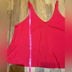 This red camisole from Free People features a stylish V-neckline and wide shoulder straps, offering a relaxed and comfortable fit. Made from a lightweight, flowing material, it's perfect for warm weather and casual outings.