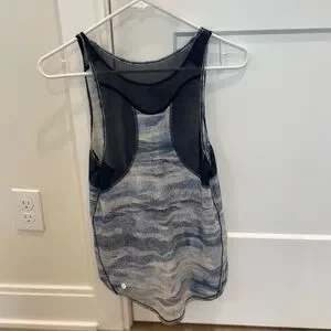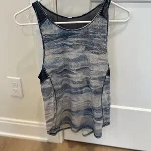 This Lululemon Athletica tank top features a stylish gray and white marbled pattern, perfect for both casual wear and athletic activities. Designed with a classic crew neckline and standard armholes, it offers a comfortable fit ideal for warm weather or exercise. The lightweight fabric ensures breathability and ease of movement.