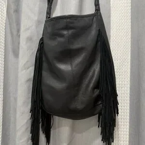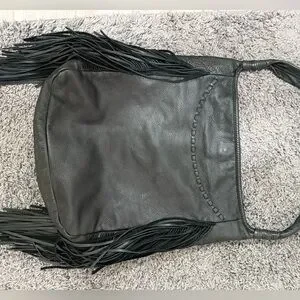 Top Condition: Magnetic Closure Fastener; Inside Zipper/Piuch Pocket; Styled with leather feinges on both sidess.