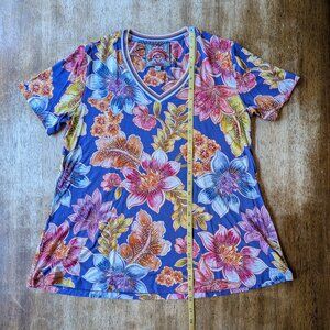 Johnny Was Janie Favorite Short Sleeve V‑Neck Swing Tee Leilah, Size Small