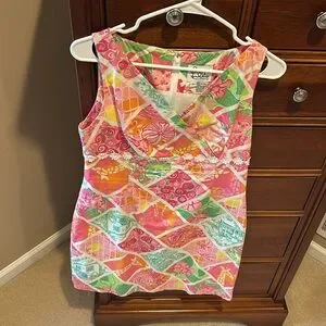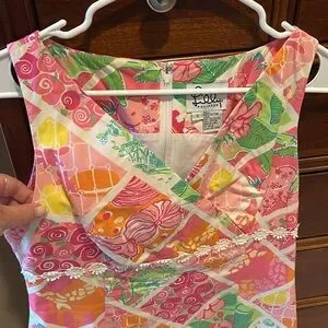 Lilly Pulitzer Sleeveless Floral Multicolor Dress, sz 6, pink/green/white/orange