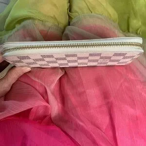 The slim-line Clémence wallet is crafted from Damier Azur canvas with a grained-leather lining. Its all-round zip opens wide to allow easy access to its two generous compartments, complete with pockets and card slots. Refined details, such as the leather zip pull, mean the Clémence can also be used as a clutch.