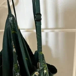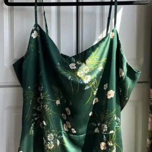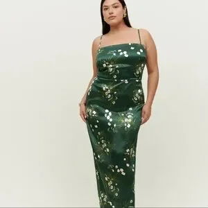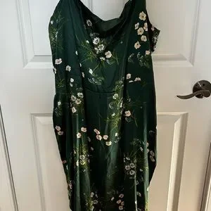 Slip style dress that hits at the ankle. The photo of me at the end for reference I am 5’-4” . This does come with adjustable straps and was just dry cleaned. Only wore once to a wedding.