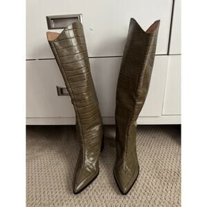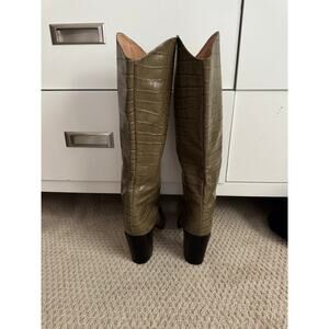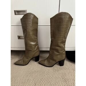 Schutz Leather Analeah croc embossed olive boots 9.5