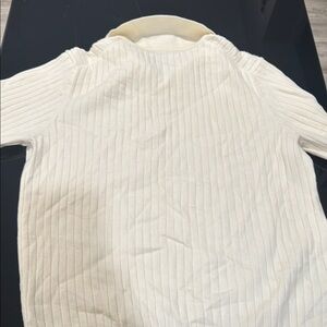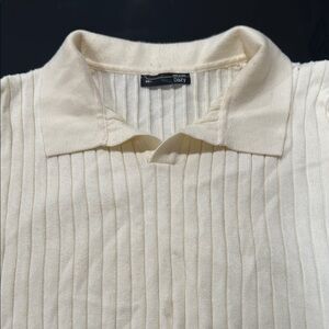 Elevate your wardrobe with this elegant cream V-neck sweater. Perfect for layering or wearing on its own, it offers both comfort and style.