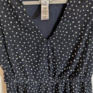 Kate & Lily tiered midi dress navy blue white polka dots Size 14 ruffles