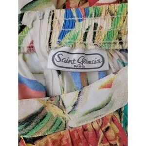 Vintage Saint Germain Paris Tropical Floral Midi Skirt Elastic Waist Womens Sz S