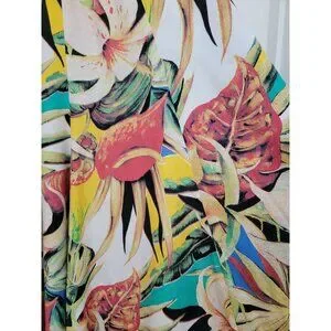 Lightweight and breathable, this tropical floral midi skirt offers a vibrant design, elastic waistband for comfort, and flowy silhouette for effortless style. No size tag, but fits like a small. Waist = 12.5 inches, Length = 31 inches