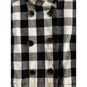 TROVATA Coat Jacket L Large Double Breasted Pleated Back Gingham Buffalo Check Plaid Black and White NWOT