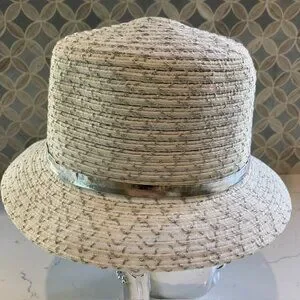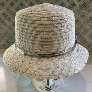 Disney Parks Mickey Mouse Straw Bucket Hat Silver/White Adult 57cm Mickey Icon