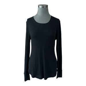 Women Shirt OLD NAVY Essential Rib T-Shirt Black Long Sleeve Tee Crew Neck Top