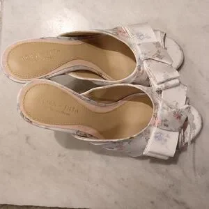Elegant floral heels with a chic bow. Perfect for any occasion. Slip-on style for easy wear.