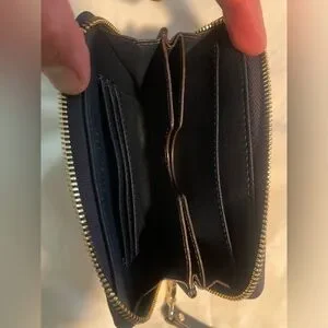 Michael Kors Saffiano Leather Wallet W Wristlet & Cellphone Slot! Navy W Gold