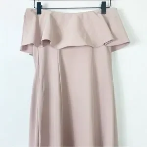 Stylish strapless dress with elegant ruffle design. Ideal for special events. The dress was meant to have a strap, but it was lost. However, it can be worn without one.